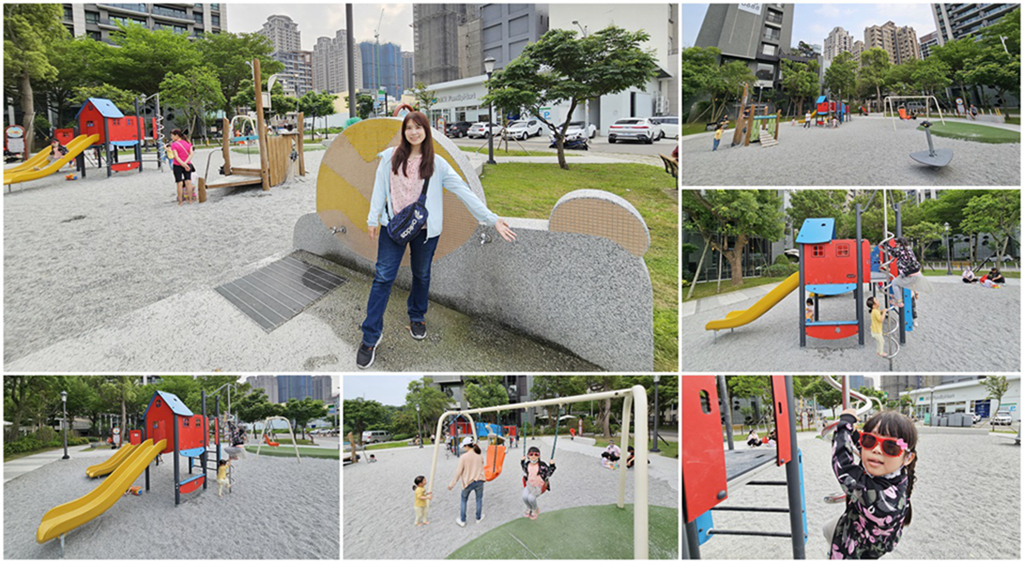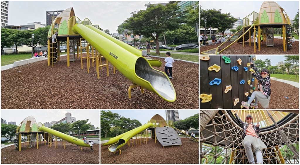 【新竹特色公園】小蝸遊戲場~竹北兒24公園|紅藍小屋造型的複合式遊具|綠蔭圍繞的城市小森林