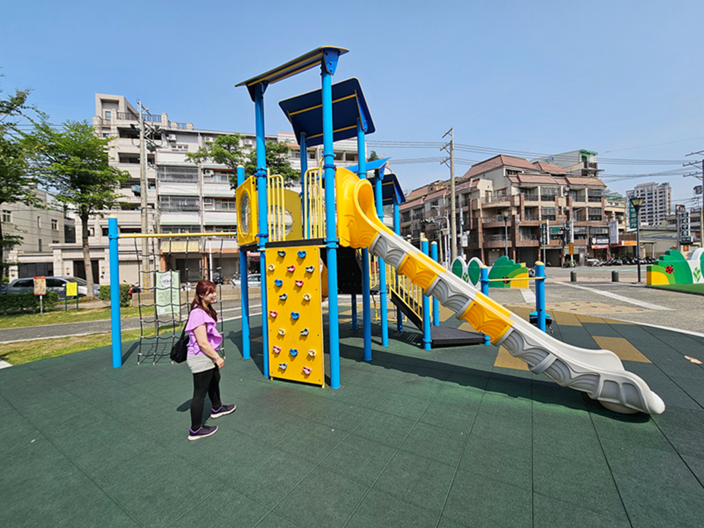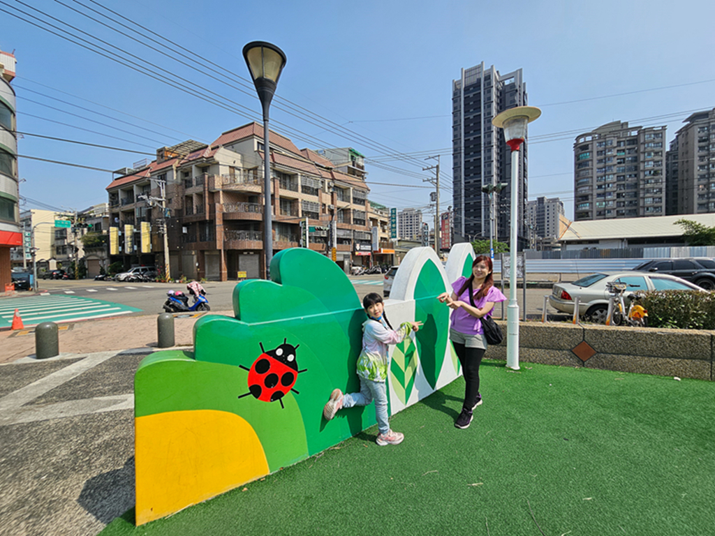 走進大新兒童公園,瓢蟲彩繪溜滑梯,紅紅圓圓的外型,遠遠看真的像一隻停在草地上的大瓢蟲,超級討喜