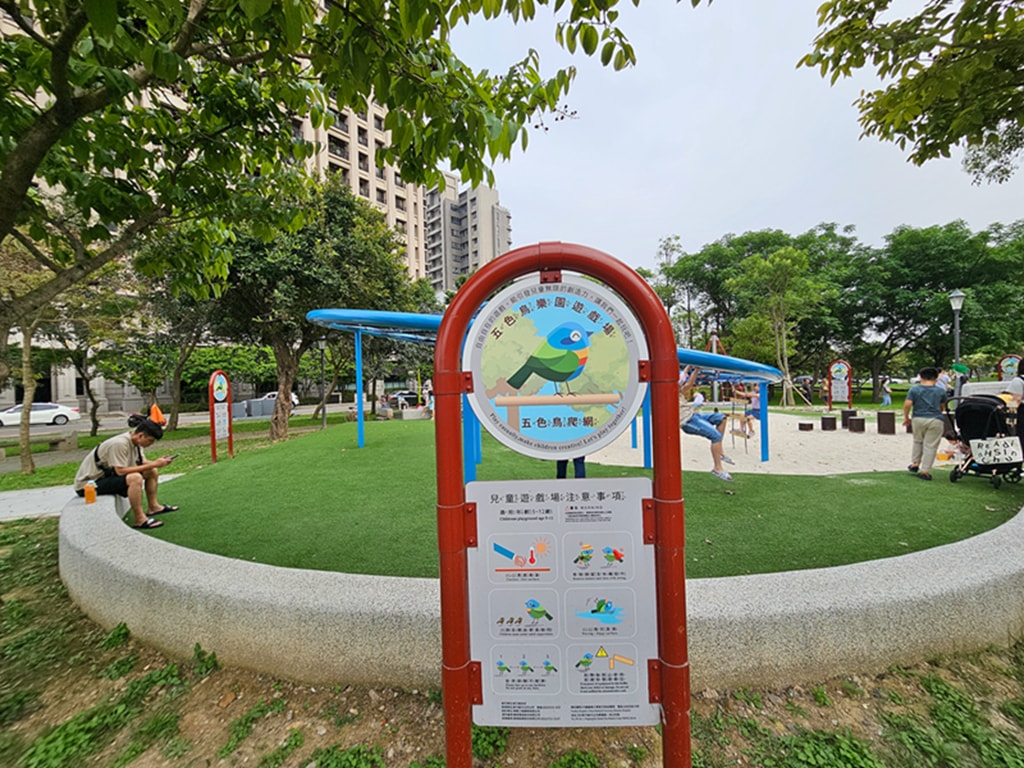 走進竹北市的公兒26公園,你會馬上被那一抹鮮豔的「五色鳥藍」吸引住視線。這裡是五色鳥樂園遊戲場,一個結合攀爬、溜索、沙坑的放電基地,保證小朋友一踏進來就像打開無限體力模式!