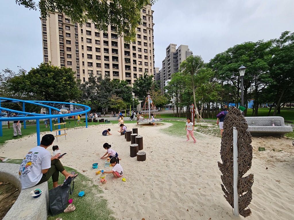 大沙坑依舊是孩子的天堂,帶著鏟子小車車就能玩到入迷。旁邊的木樁跳跳樂更像一個小小闖關路線,孩子們能挑戰平衡力,大人試玩則容易演變成「現場綜藝摔角秀」🤣