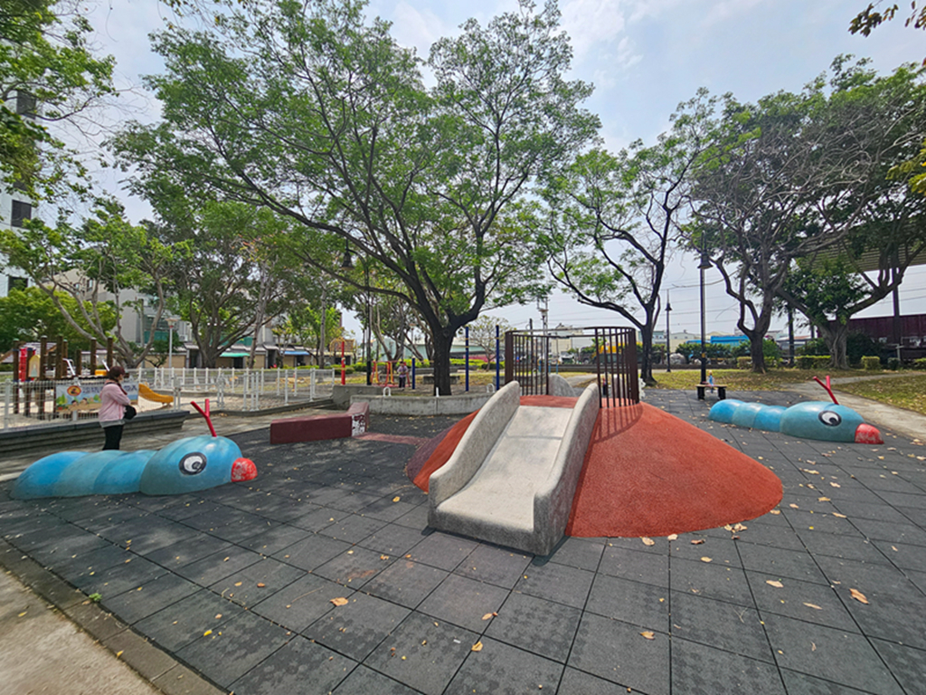 在仁堤公園裡,我必須特別點名超.萌.共融遊具,走近一看,造型可愛到不行,顏色也很療癒,而且是共融設計,不管大童、小童,都可以找到屬於自己的玩法