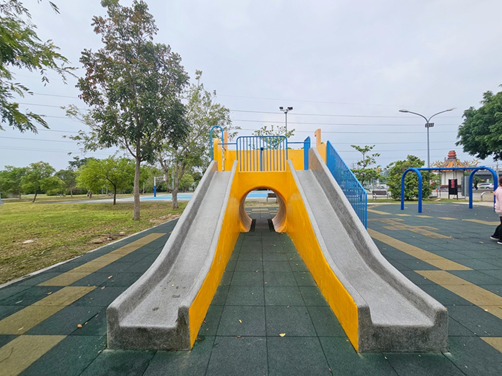 走完仁化公園,再順道走進百姓公廟,你會發現這裡不只是遊具、體健器材或廟宇,而是一種生活的節奏,孩子在潛水艇裡歡笑、在旋轉遊具上尖叫、大人則在體健區伸展放鬆,甚至在廟前看見居民輕聲參拜。每一個小角落都藏著屬於社區的溫度