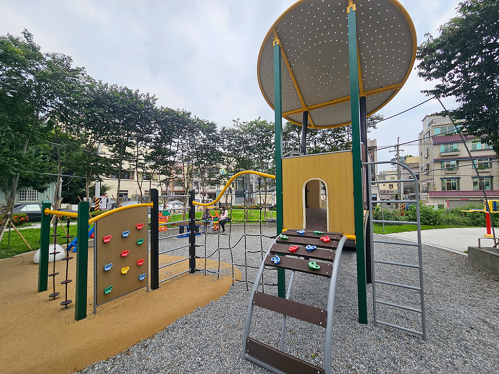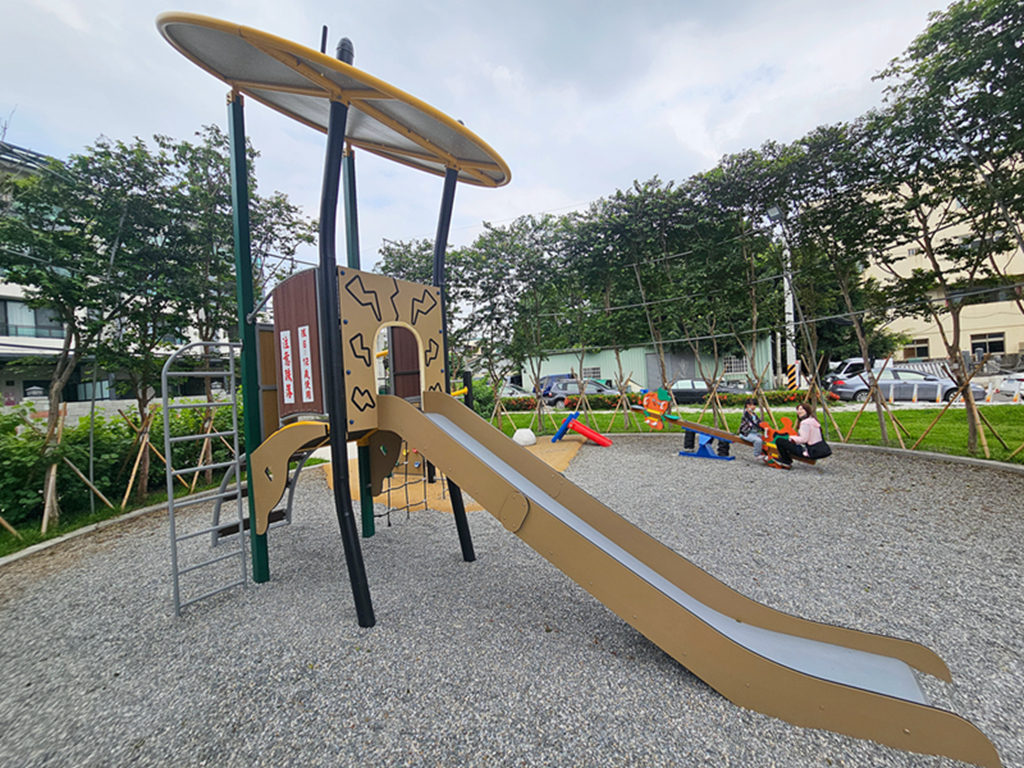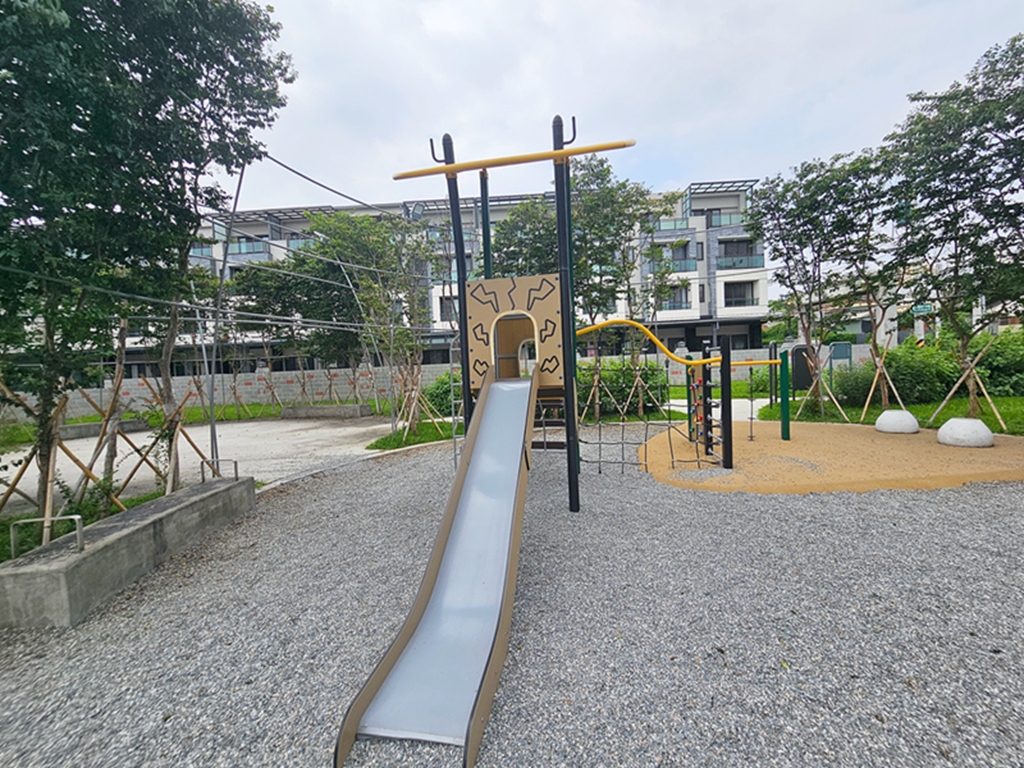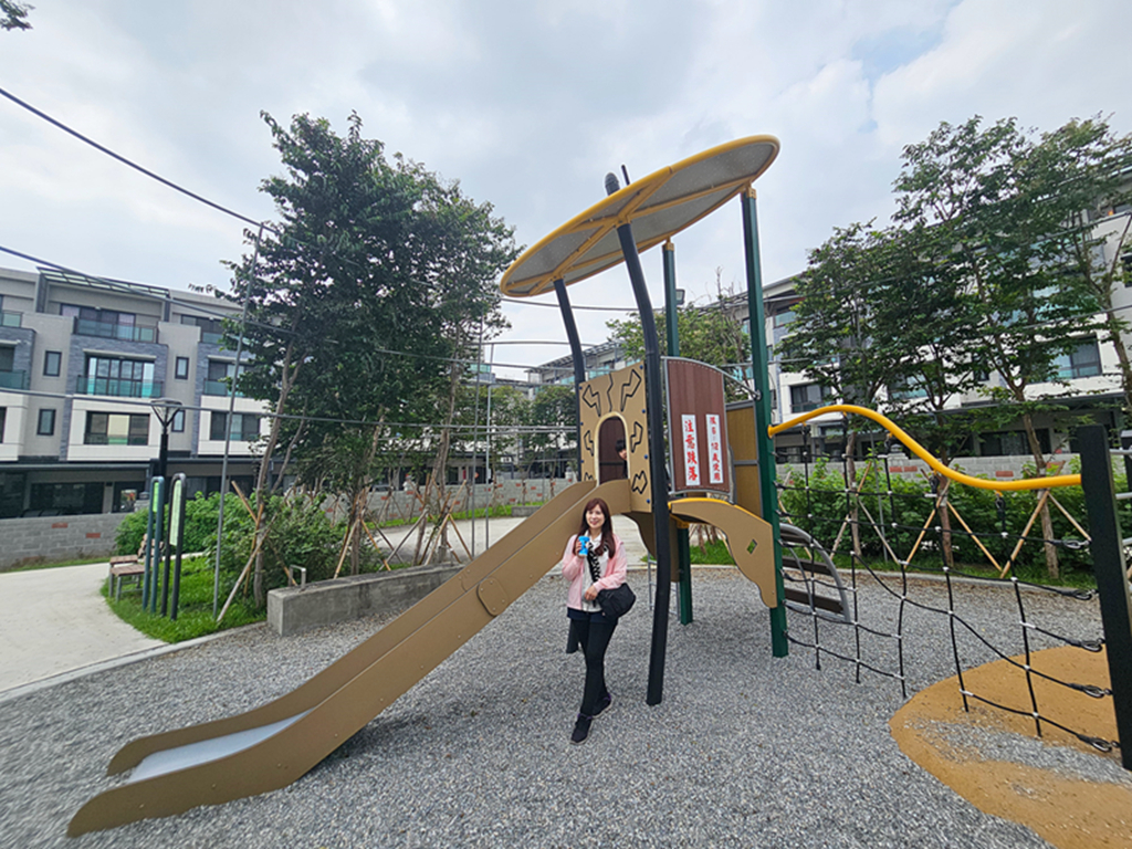 一走進王福公園的遊戲區,我第一眼就看到那座溜滑梯,它不是那種高得讓小孩心臟抖三下的類型,而是剛剛好,看起來親切又安全