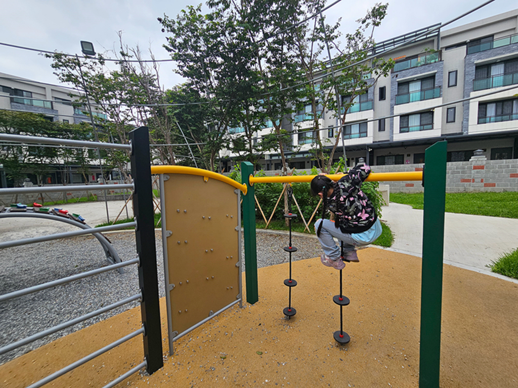 王福公園裡有一座小型攀爬網,它的高度剛好,孩子站在最上面不會覺得可怕