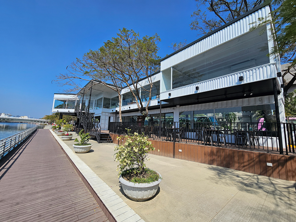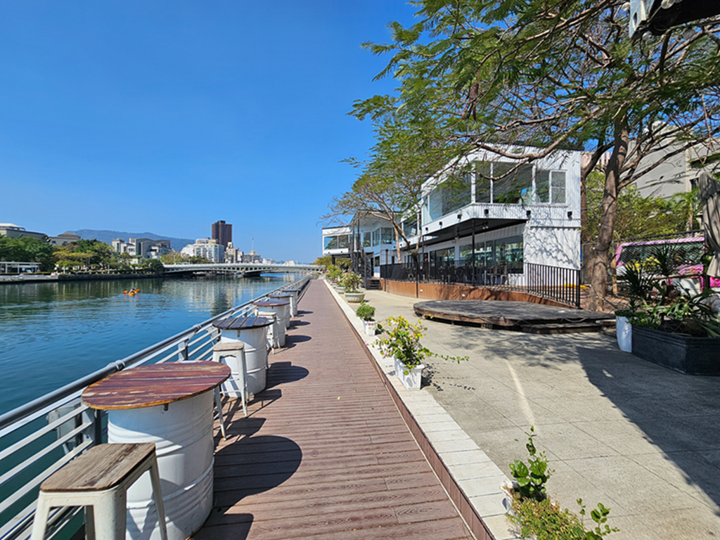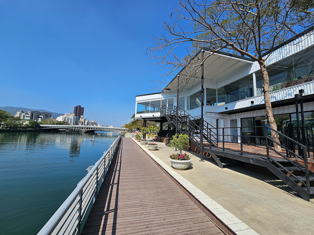 兩層樓高半開放式的空間,能夠邊享用美食,還能邊賞整個愛河河畔美景,為河景約會首選